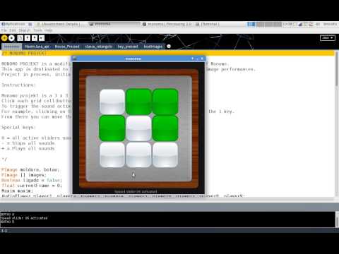 Processing code based in concept of Monome. This app is destinated to DJs, VJs and artists who need a tool for your live image performances. Project in process, initiated in june of 2013 as part of